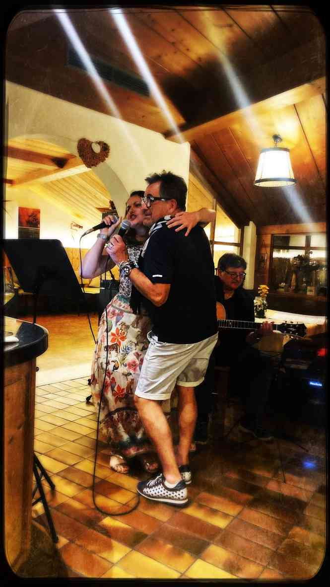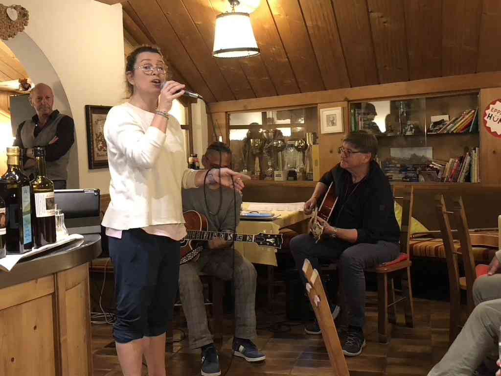 Ein großes Glück für unsere Gruppe ist, daß unsere Gastgeber vom Hotel Steinegger, Verena und Michael, auch musikbegeistert sind. Wir dürfen uns die ganze Woche ungestört unserer Musikleidenschaft hingeben und die beiden und sogar ihr Personal haben selbst auch großes Vergnügen daran, wenn wir das Hotel zum swingen bringen. Meistens waren Verena und Michael mit bei den Letzten, die nach den Sessions am Abend in der Bar zu Bett gingen. Ich denke, das spricht für unsere Gruppe!