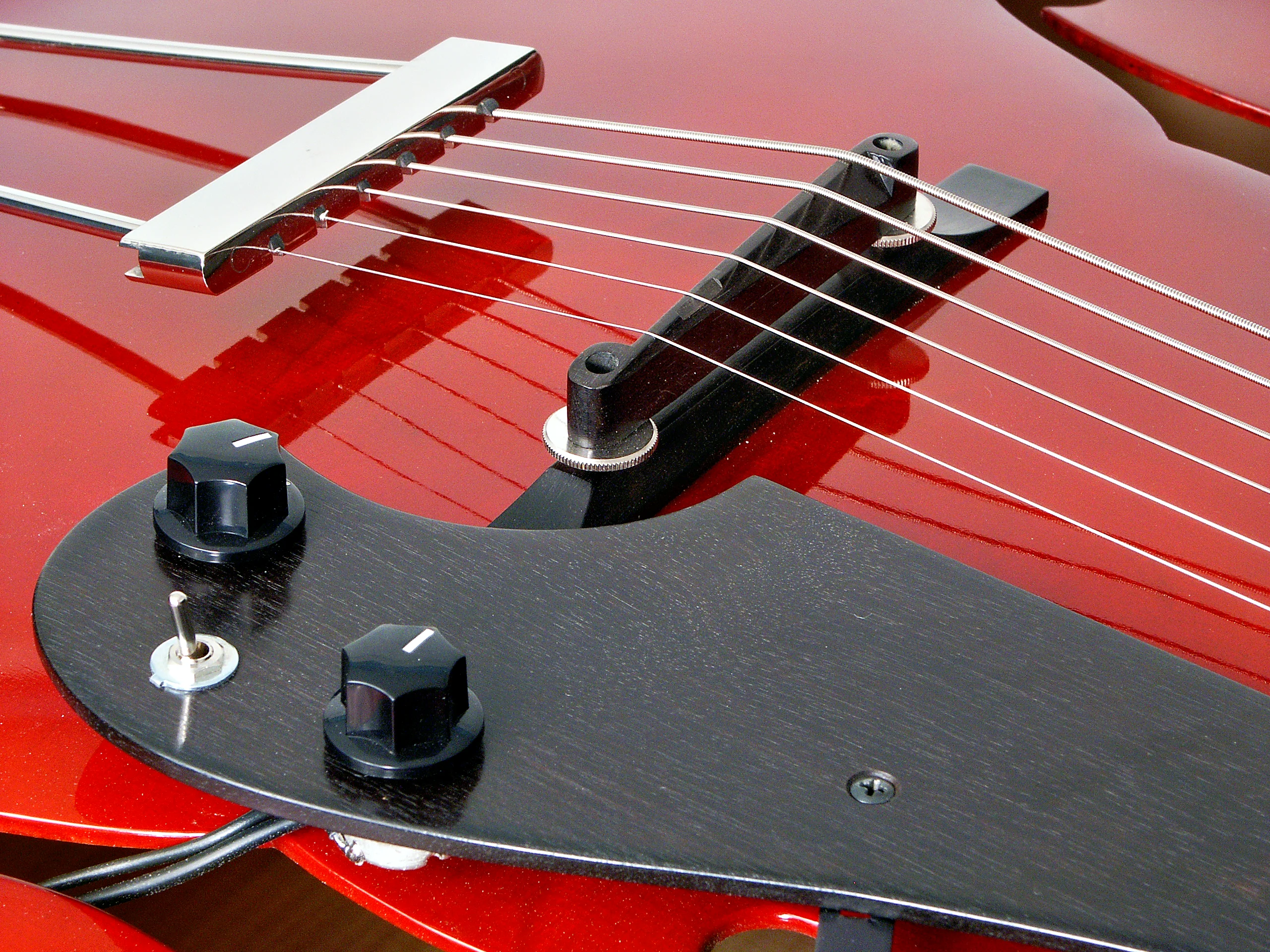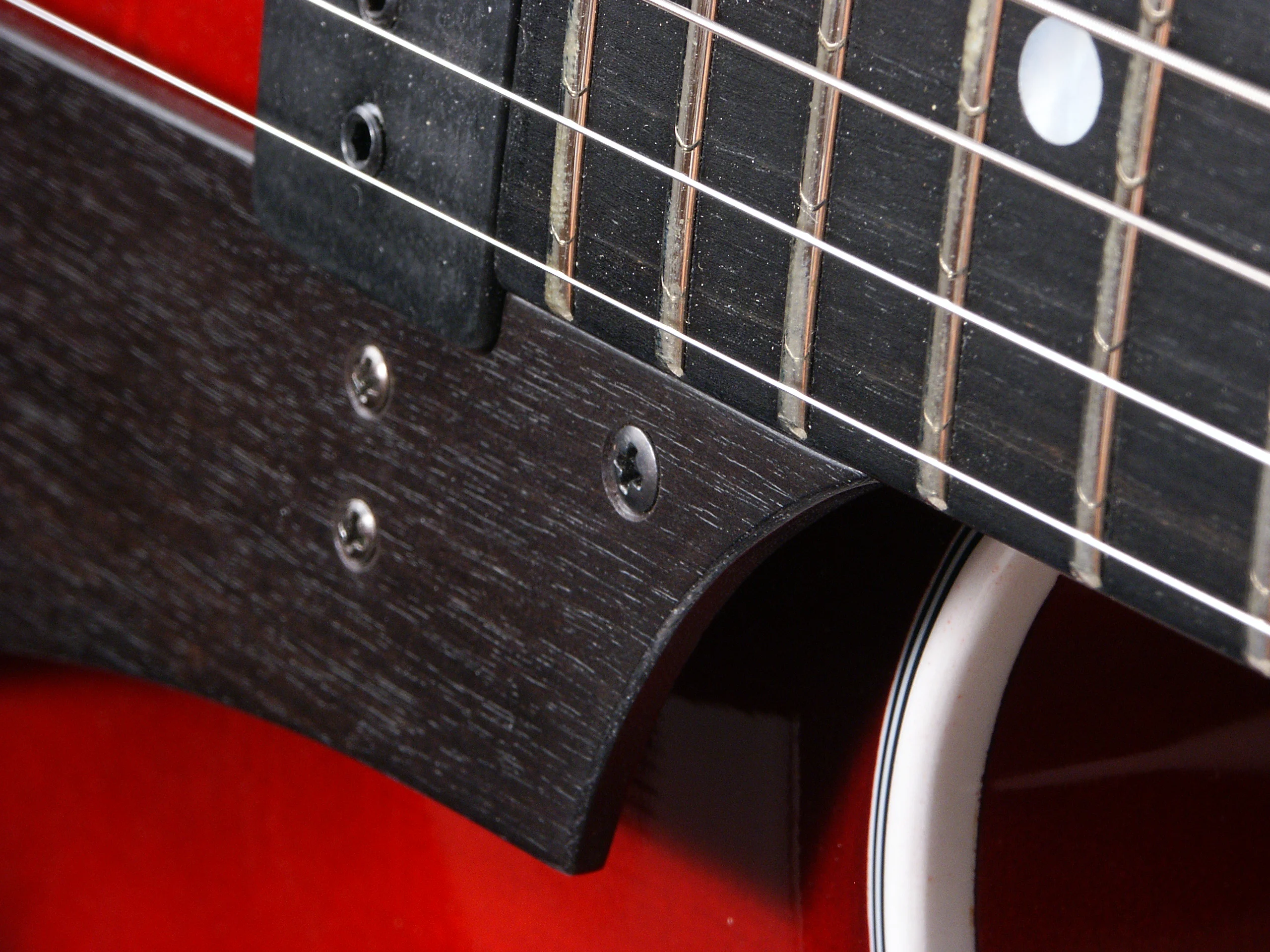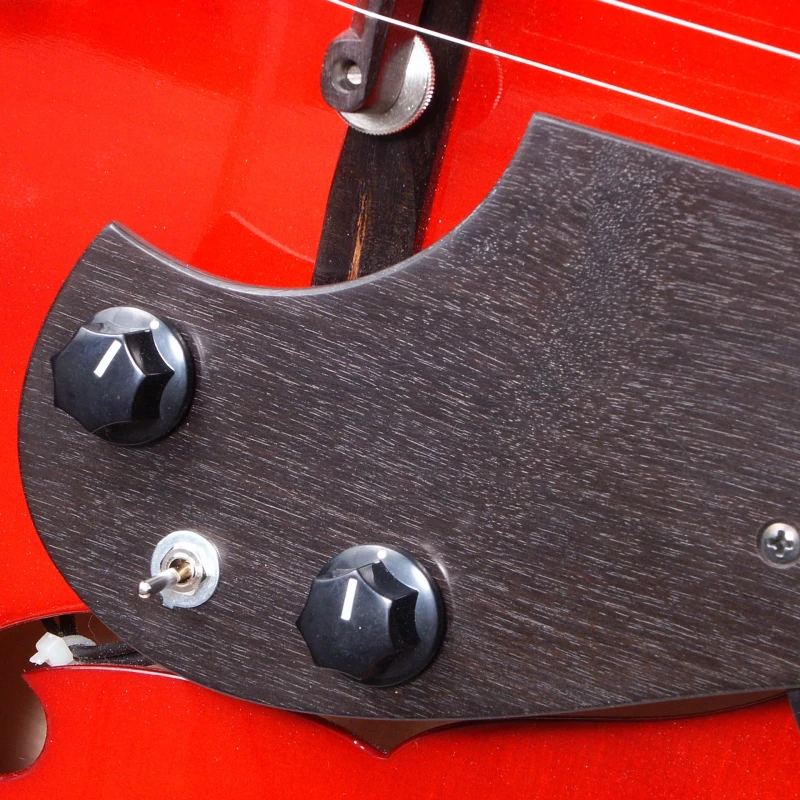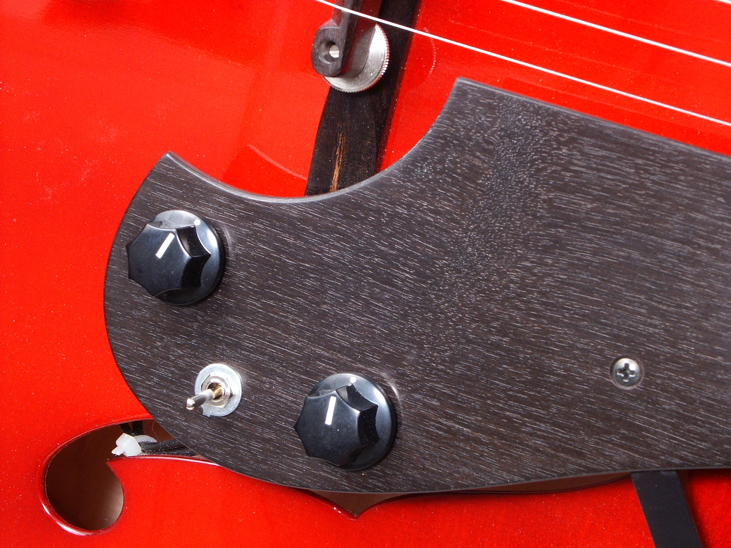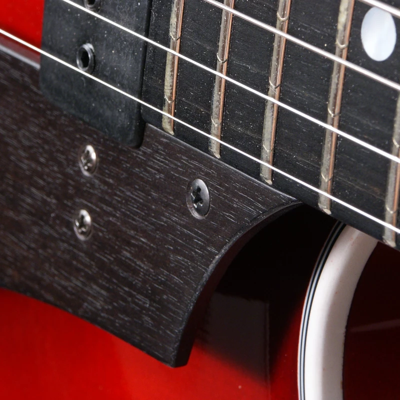 Die „Ballade“ ist mit einem einfachen, aber geschmackvollen Metallsaitenhalter ausgerüstet. Der Tonabnehmer ist über der Decke schwebend montiert, so dass diese frei schwingen kann.