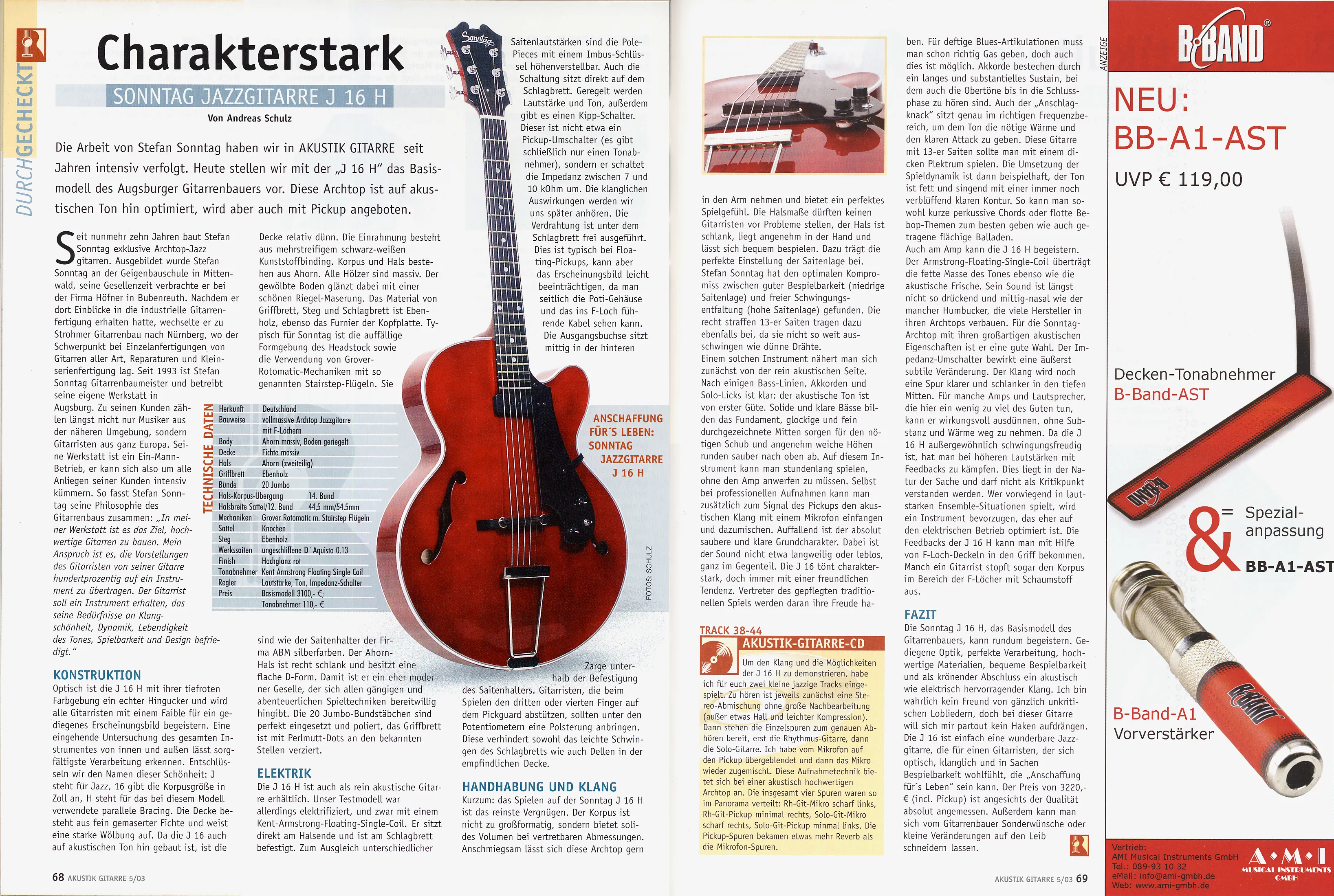 In der Ausgabe 5/2003 von „Akustik Gitarre“ gab es einen Testbericht über eine J16H in der Ausführung als Basismodell. Diesem Modell habe ich inzwischen den Beinamen »Ballade« gegeben.
