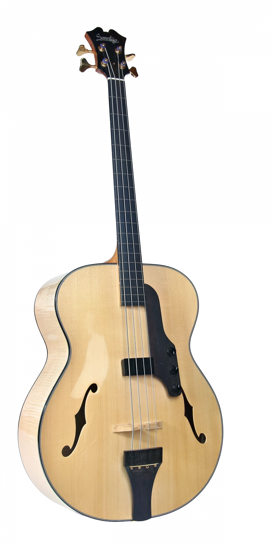 Mit dieser Bauweise ist ein druckvoller, tiefer Basston möglich, der in kleinen akustischen Settings den Klang des Ensembles wirkungsvoll stützen kann. Beim Einsatz in größeren Räumlichkeiten verstärkt ein Lemme-Humbucker den Klang. Er ist ein Magnet-Tonabnehmer, der so konzipiert ist, daß er den akustischen Charakter des Basses sehr naturgetreu abbildet.