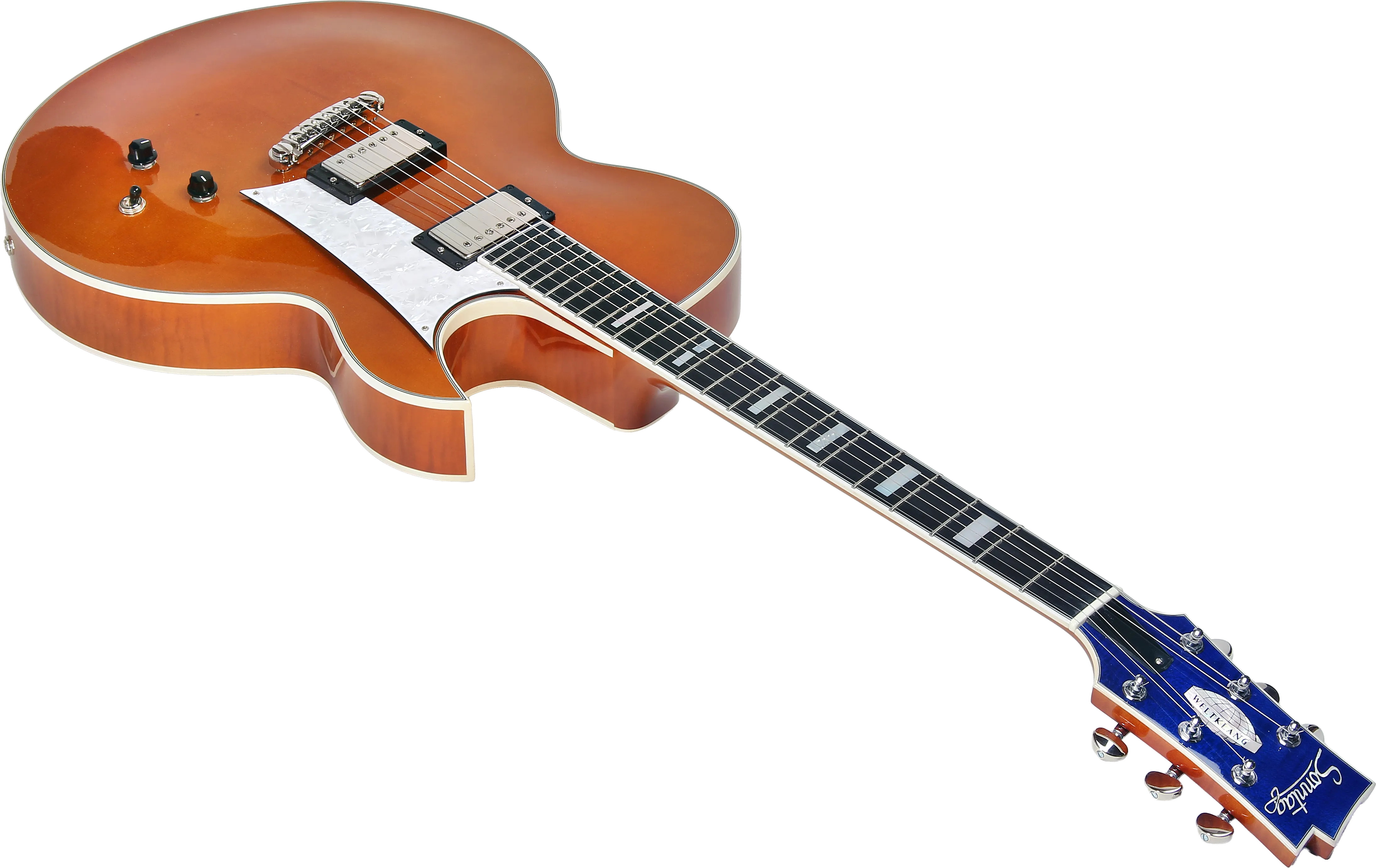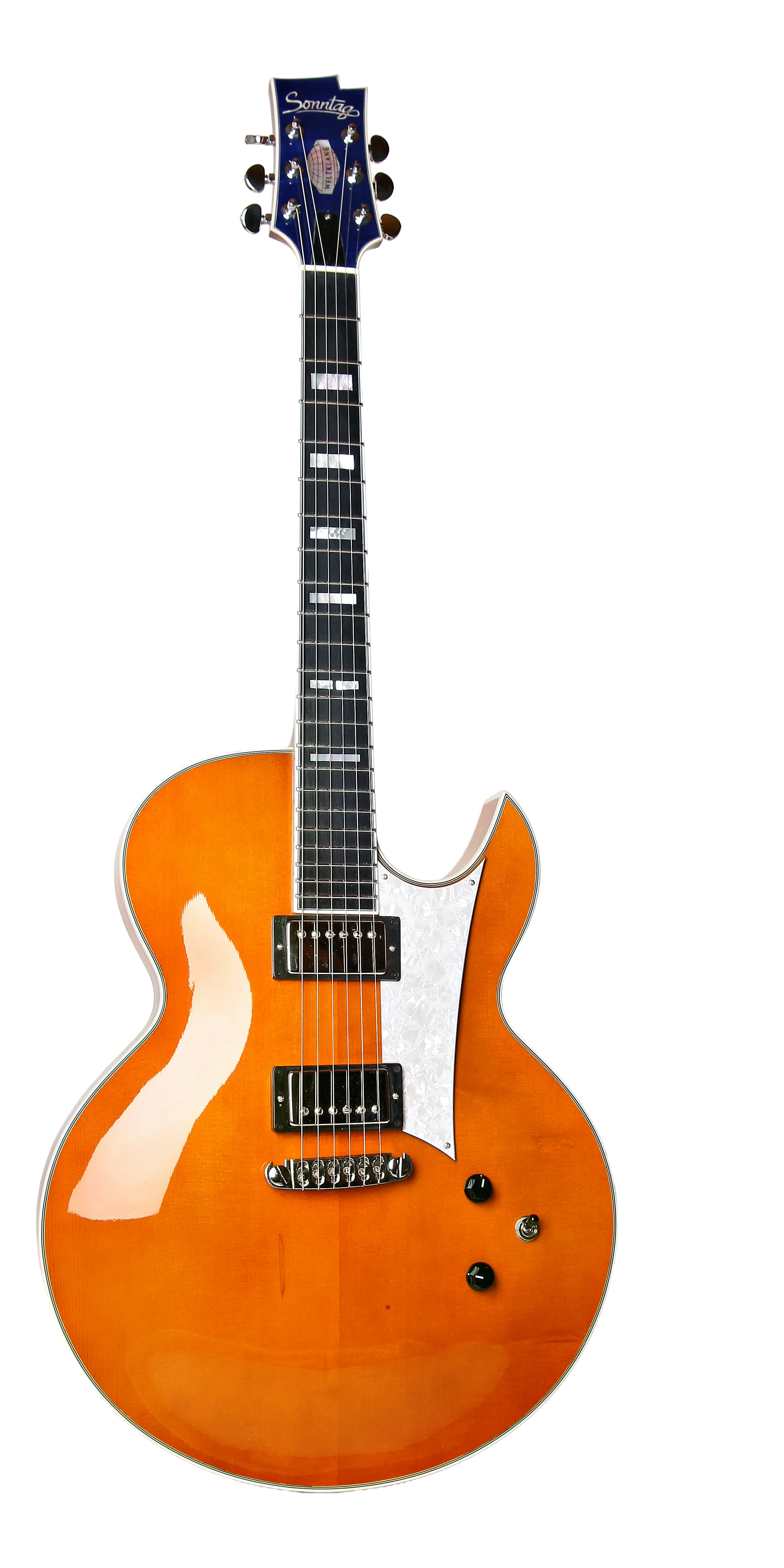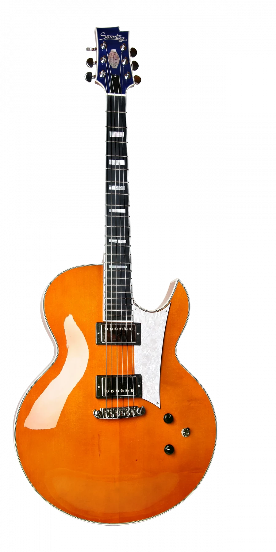 Der Korpus ist wie eine Archtop mit Zargenkranz, massiver Fichtendecke und massivem Ahornboden konstruiert. Um den Ton elektrischer zu gestalten ist unter den Tonabnehmern und der Brücke ein Sustainblock eingeleimt. Das reduziert die Rückkopplungsgefahr auf ein Minimum und gibt dem Ton eine gute Substanz.