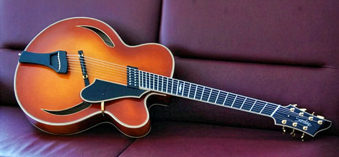 Endlich ist sie fertig und mein Kunde durfte sie abholen: Eine J18X Augusta, siebensaitig mit Fächergriffbrett.