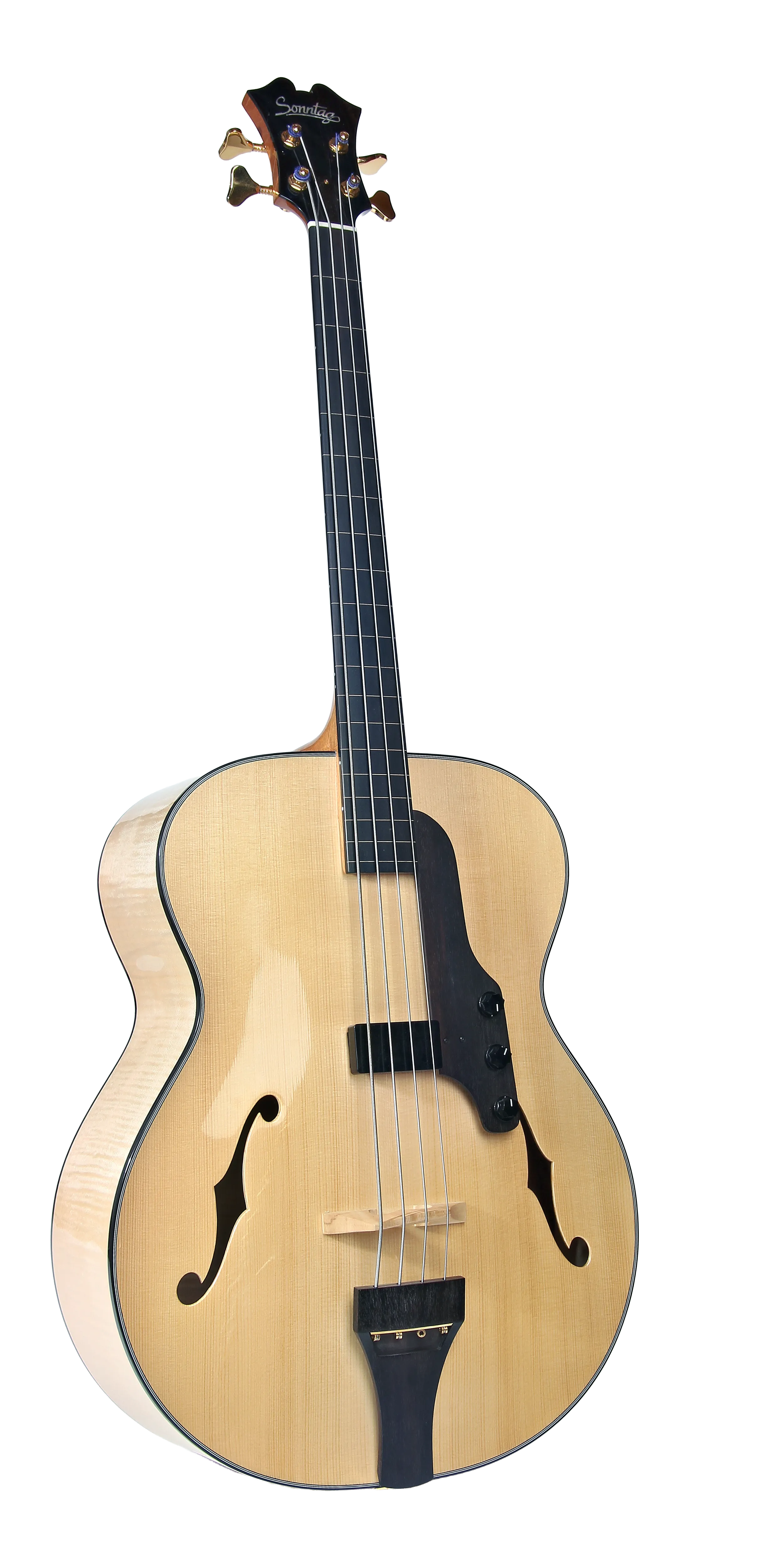 Mit dieser Bauweise ist ein druckvoller, tiefer Basston möglich, der in kleinen akustischen Settings den Klang des Ensembles wirkungsvoll stützen kann. Beim Einsatz in größeren Räumlichkeiten verstärkt ein Lemme-Humbucker den Klang. Er ist ein Magnet-Tonabnehmer, der so konzipiert ist, daß er den akustischen Charakter des Basses sehr naturgetreu abbildet.