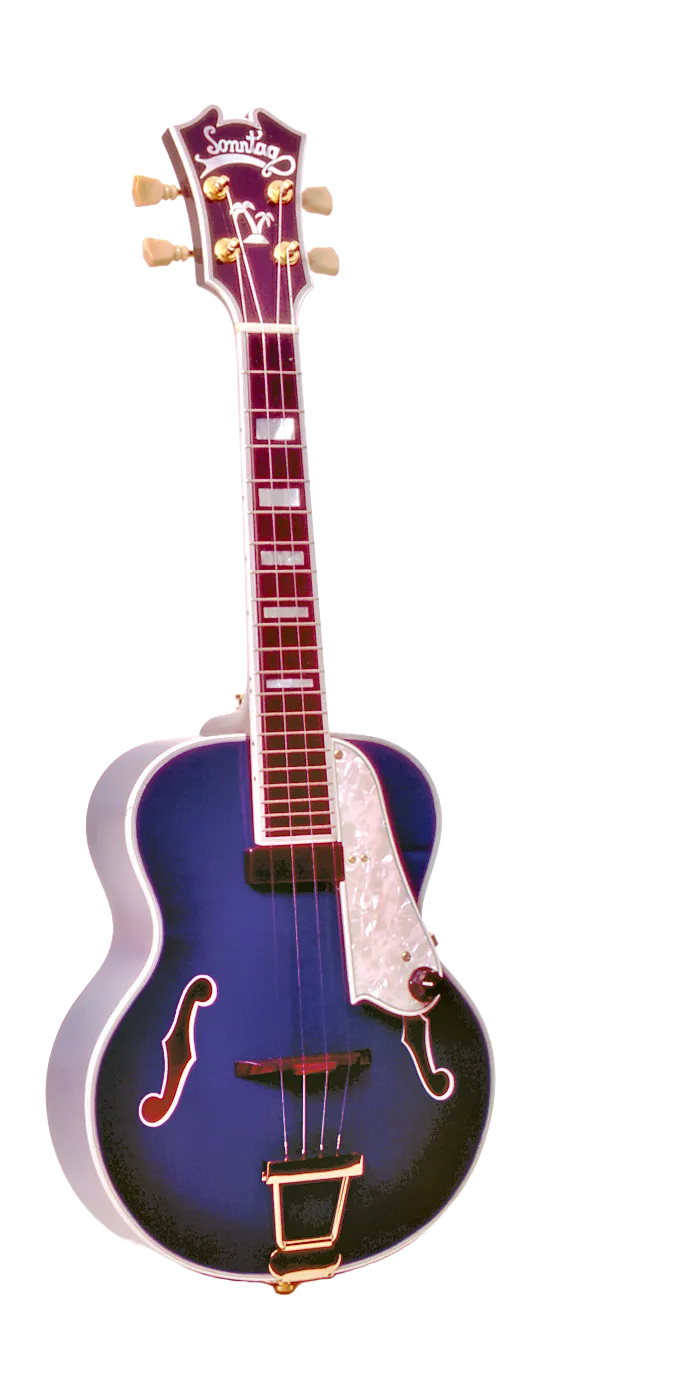 Die Größe entspricht der Tenorukulele, die Mensur ist 39 cm lang. Sie ist gebaut wie eine akustische Archtopgitarre mit Parallelbebalkung und handgearbeiteter Decken- und Bodenwölbung. Der einteilige Steg sorgt für eine sehr direkte Tonübertragung der Saiten auf den Korpus. Verstärkt wird sie mit einem Häussel Singlecoil-Tonabnehmer.