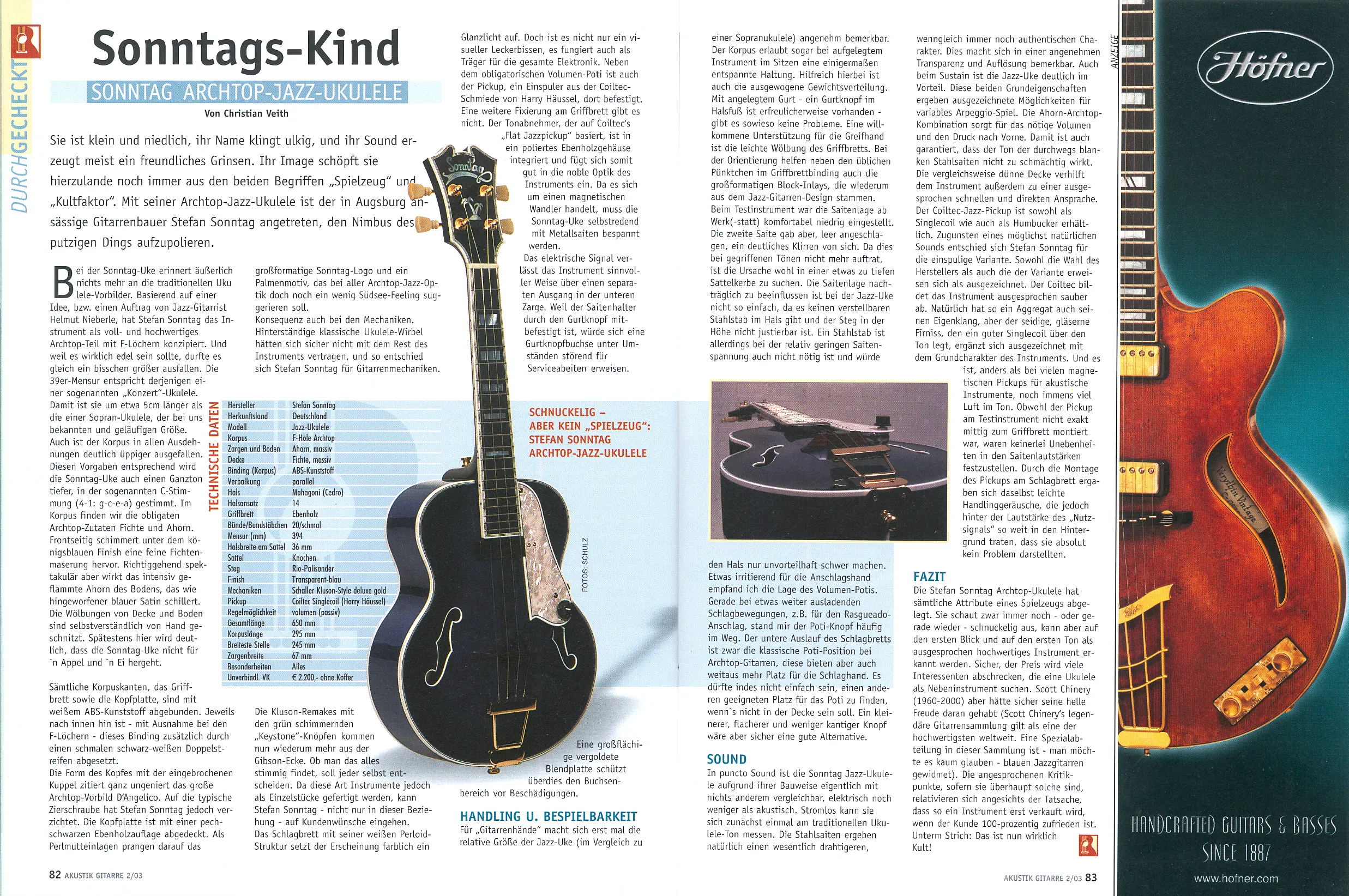 In der Ausgabe 2/2003 von „Akustik Gitarre“ gab es einen Testbericht über die akustische Jazz Ukulele.