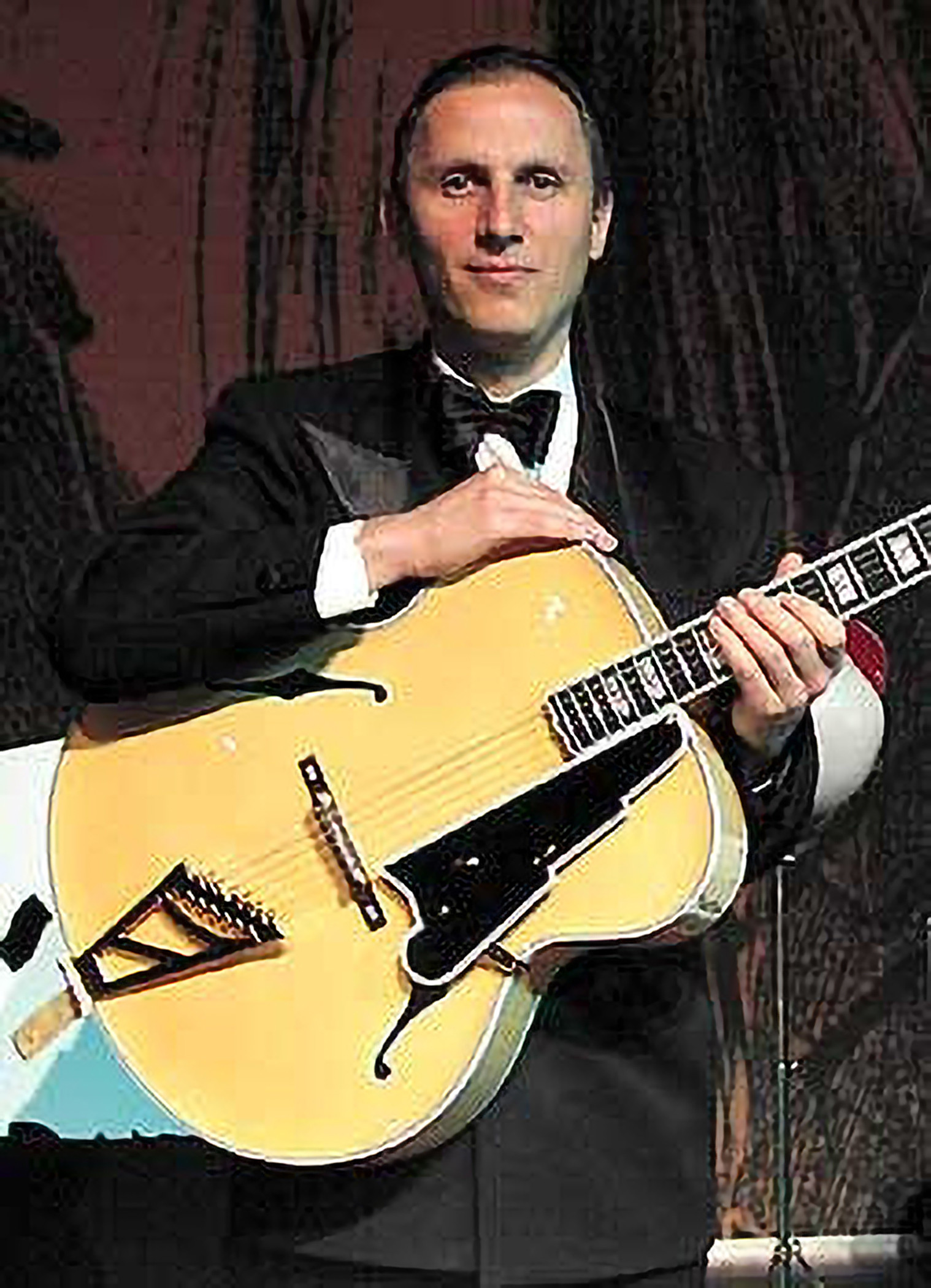 Die originalgetreue Nachempfindung dieses Stils fängt bei den Instrumenten an und geht bis hin zur gesamten Austattung des Orchesters im Stil der 40er Jahre. Deshalb bestellte Dirk Schelenz eine J18X ohne Cutaway, die genau zu den Instrumenten seiner Kollegen und dem Stil des Orchesters paßt.